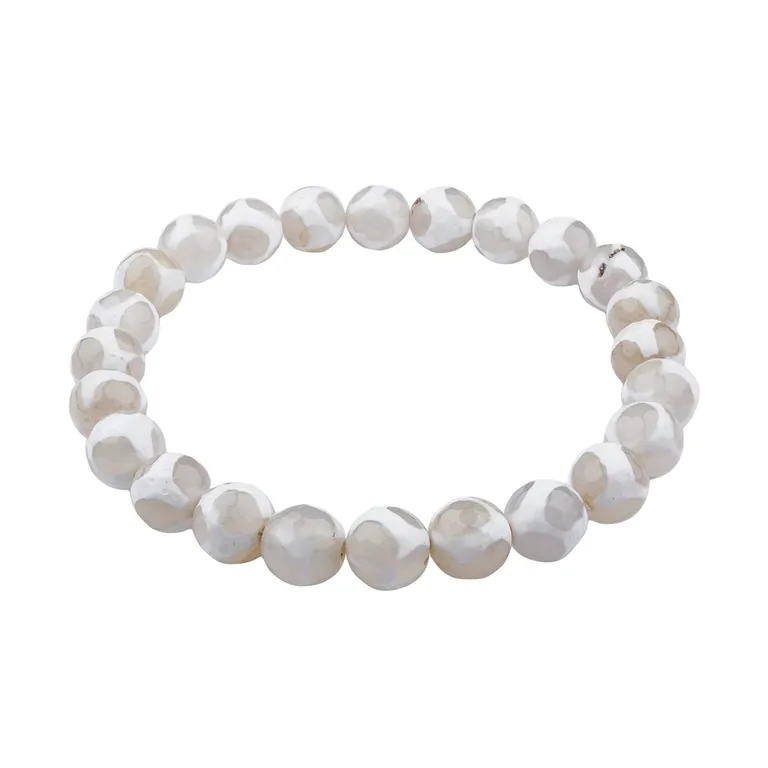 Achat Armband 8mm facettiert weiß creme mit edel geschliffenen Kugeln aus natürlichem Edelstein. Elegantes Schmuckstück mit harmonischem Farbspiel und angenehmem Tragekomfort.