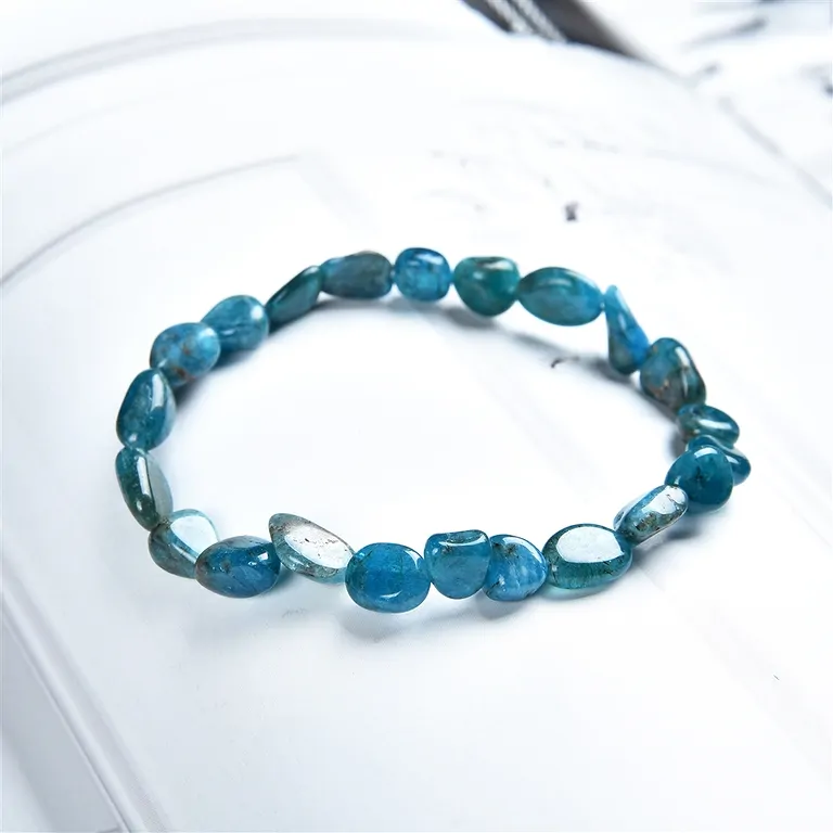 Edles Apatit Armband in dunkler Farbvariante mit 6–8 mm Nuggets. Natürliches Edelsteinarmband mit markanter Ausstrahlung und angenehmem Tragekomfort.