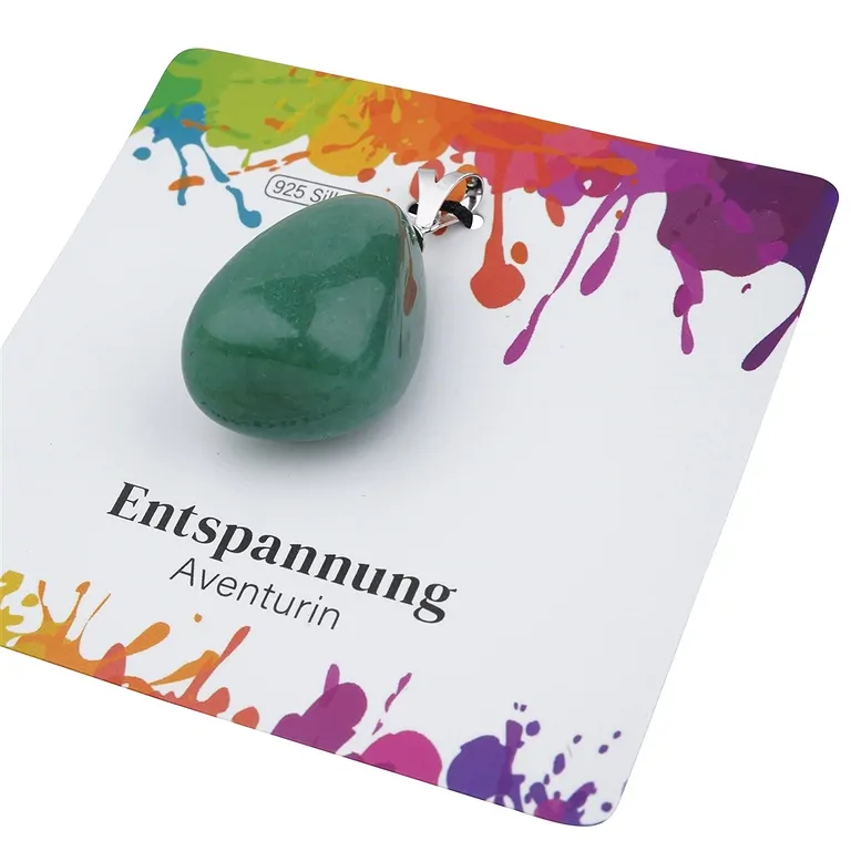 Aventurin Anhänger Trommelstein – Rhodinierter Edelstein Schmuck