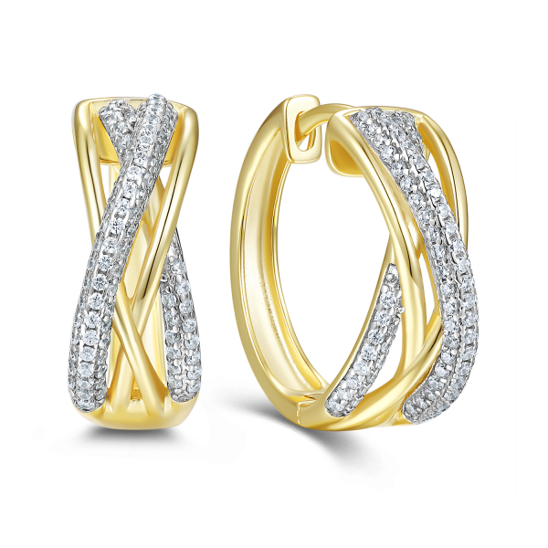 Klappcreolen 4-reihig Ø20mm mit 68 Zirkonia aus 925 Silber vergoldet