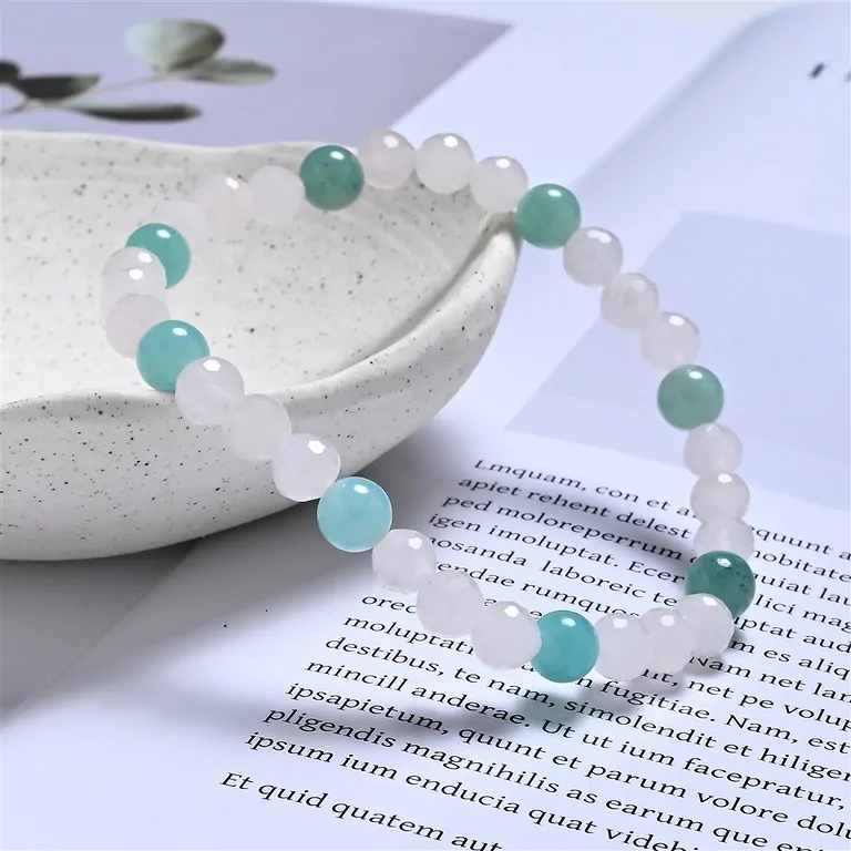 Rosenquarz Amazonit Armband 6mm Kugeln – Edelstein Schmuck