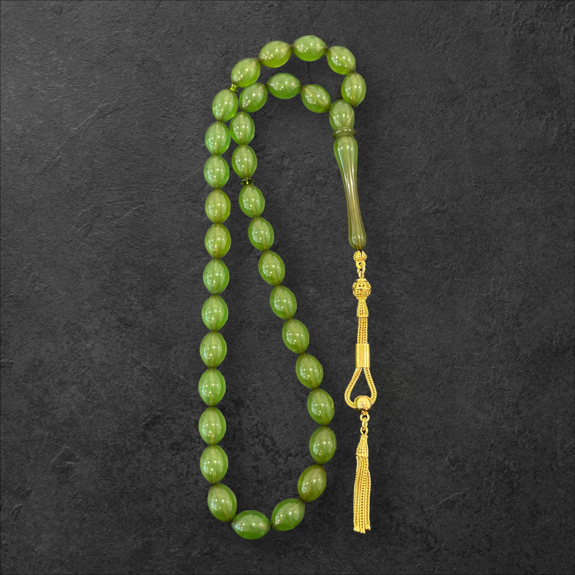 Diese Gebetskette verbindet traditionelle Handwerkskunst mit spiritueller Bedeutung. Sikma Kehribar gilt seit Generationen als geschätztes Material für Gebetsketten, da es nicht nur optisch ansprechend ist, sondern auch eine beruhigende Wirkung für Geist und Seele haben kann.